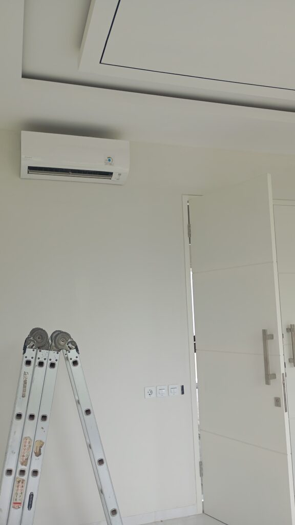 pastikan unit indoor sudah pas dan sesuai hati ,selain itu kita perlu ke estetic an pemasangan AC tersebut.